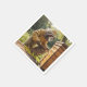 These paper napkins feature a beekeeper tending his hives. The text can be removed to use for other purposes.