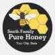 Illustration graphique d'une abeille et d'un nid d'abeille par l'artiste-concepteur Charmaine Paulson sur un étiquette de jarre.