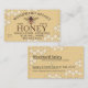 Honey label with Honeybee and dotted border on a honey-yellow background. Use this card to advertise general apiary events on back with elegant honeycomb patterned background.