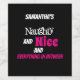A fun been naughty and nice and everything in between design, white and hot pink assorted typography on a black label. Just enter your name or text.