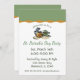 Beer and leprechaun hat invitations with a green and tan wavy trim.