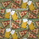 Beer Mugs and Pizza Slices with Cheese and Pepperoni and light beige stars in a Dijon green. You can customize the colour to any choice you want. Great idea gift for him!
