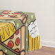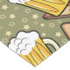 Beer Mugs and Pizza Slices with Cheese and Pepperoni and light beige stars in a Dijon green. You can customize the colour to any choice you want. Great idea gift for him!