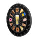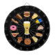 This snack themed dartboard has graphics so you can aim a dart at your favourite food. Each image shows a different popular savoury bite, dessert or cake. Try to hit the hamburger, apple pie, fries, bacon sandwich, hot dog, cheesecake, bagel, muffin, pizza slice, doughnut, sausages, and chocolate cake. Or go straight for the lager glass in the centre, brimming full with golden beer.