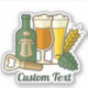 Beer illustration. Bottle, glass, opener, hops and barley. Custom text.