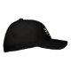 Fits well due to elastic edging, not adjustable. Good qualty material. Good quality embroidering. Subtle lettering (white on beige) just as my wife likes.