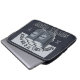 The sleeve is made of nice feeling material and seems very durable. I'm not sure how easy it'll be to clean, but the construction seems sound and the fabric is quick thick. I also like the double zipper. The printing is lovely and appears durable. The white on black contrast is nice, and the design very elegant.