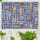 Styles of beer in white surrounding colored barrel, mug, glass, bottle, bottle cap, hops and wheat on a Classic Blue background. Designed for a lifetime of use, these machine washable kitchen towels look great and clean up well, too! 80% durable woven polyester/ 20% polyamide blend microfiber. Machine washable. Imported, printed in the USA. Dimensions: 16" x 24"