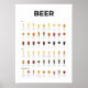 An aesthetic Beer chart lining up all 54 major beer types and labelling each with their names, alcohol percentage & taste descriptions.