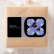Bumble bees with black wings and antennae and striped black and yellow bodies. They're buzzing about the flowers. Pretty mauve and purple flowers on a black background accent this label. Customize as desired.