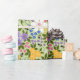 Inspired by flowers of the buttercup family, this beautiful floral pattern features cute bees buzzing among yellow buttercups, white clematis, lavender heptica, blue delphinium, and pink ranuculus on a soft green background. This design is perfect for a cheerful, summer feel.