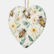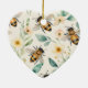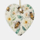 Bees and Flowers - Cream Floral Honey Bee Pattern Ceramic Ornament