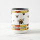 Bees in flight with honeycomb stripes at the top and at the bottom of this customizable coffee mug. Great as a gift for beekeepers and nature lovers, Add the name and the beverage on this cute bee styled mug.