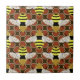 This cute pattern features a graphic motif of busy bees in black and yellow set against a stylized honeycomb design in warm orange and brown hues.
