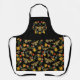 Elegant honey bee themed apron design. The designed features our own original hand drawn decorative honey bee and floral wreath design. A black background contrast beautifully with the honey bee wreath design. Customized with your monogram. The bottom the apron feature as a matching homey bee and floral pattern. All illustrations contained in our honey bee apron are hand-drawn original artwork by Moodthology.
