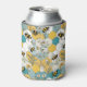 Bees Floral Honeycomb Yellow and Teal Can Cooler