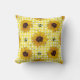 Bees, sunflowers, chequered, vintage pattern. throw pillow