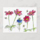 Bees Watercolor Flowers Pink Cosmos Postcard