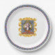 Celebrate Beethoven! From an original artwork series by ZoeSPEAK of classical music collectors plates, these Paper Plates feature a portrait of the composer Ludwig van Beethoven. The portrait is a hand tinted etching, surrounded by an illustration of an ornate oval golden frame. The frame is on a wallpaper background of yellow suns and uplifting winged spirits against a medium blue. Under the portrait, in red, is the composer's name. The wallpaper is surrounded by more gold ribbons, in the centre of the plate against a white background. There is a medium blue band with winged spirits and a red border around the edge of the plate.