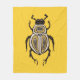 Fun beetle blanket with an ink illustration depicting a cartoon abstract beetle with decorative elements in white, gold and black over intense yellow background.