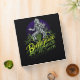 Beetlejuice sitting on a tombstone, featuring his name written three times.