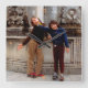 2 friends pose happily for my camera against a huge stone fountain in Croatia. Seemingly not worried that one of them only has one roller skate left!