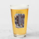 A beer glass with a funny cartoon about a beggar cat sitting on the sidewalk. Text and image can be personalized. Original artwork by DBcartoons.