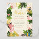 Beige | Aloha Hawaii Tropical Gold Birthday Party Foil Invitation Postcard
