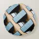 Beige and Blue Geometric Pattern Round Pillow