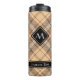 Beige and brown tartan design. Seamless pattern. Custom text and monogram.