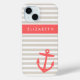 Beige and Coral Stripes Anchor Monogram Case-Mate iPhone Case