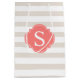 Beige and Coral Stripes Pattern Monogram Medium Gift Bag