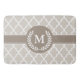 Introduce a touch of elegance to your bathroom with this beige and mocha Moroccan pattern. This sophisticated design features a classic quatrefoil pattern in warm, neutral tones, creating a calming and inviting atmosphere. The central monogram, framed by a simple wreath, adds a personalized touch with the initial "M". This plush and absorbent product is visually appealing and provides a comfortable, safe surface. Enhance your home with this stylish and timeless accent.