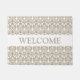 White damask pattern on a beige background colour. In the middle there is a personalizable text area that now reads "Welcome".