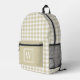 Beige and White Gingham Check Plaid Monogram Printed Backpack
