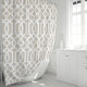 Elevate your bathroom decor with this elegant beige and white Moroccan trellis pattern shower curtain. The sophisticated geometric design adds a touch of Moroccan style, perfect for enhancing modern and chic bathroom spaces. Crafted from high-quality fabric, this curtain ensures durability and easy maintenance, making it a stylish and practical choice.