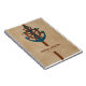 Modern blue anchor and brown ship rudder over a beige watercolor background. Optional monogram