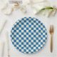Beige + Blue Check Chequered Chequerboard Pattern Paper Plate