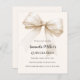 A soft beige, cream coloured background, decorated with a large bow. Personalize and add a name and party details.