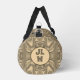 A Boho Chic Duffel Bag in a natural abstact design of cream6 beige, brown and taupe. Two different unique patterns on the sides and ends. Personalize one end with a Monogram or 2 or 3 Initials within a highlighting circle.