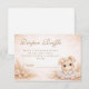 A soft and elegant baby shower design featuring an adorable bunny surrounded by delicate neutral florals and airy botanical textures. The warm beige watercolor background and gentle floral arrangement create a calm, timeless nursery aesthetic with a sweet storybook feel. Subtle neutral tones and delicate details make the design feel refined, cozy, and gender-neutral. Perfect for a beige or neutral themed baby shower with a soft woodland-inspired atmosphere.