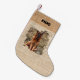 Beige faux burlap stocking, add a photo of your dog and the name. It's an image on burlap not real burlap fabric.
