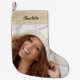 Beige faux burlap stocking, add a photo of your dog and the name. It's an image on burlap not real burlap fabric.