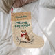 Beige burlap owl name retro Merry Christmas Small Christmas Stocking