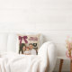 Beige burlap photo burgundy bow Christmas Throw Pillow