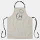 Custom chef apron feature cute chef script and hat with personalized name on neutral beige background. Great personalized chef apron.