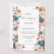Beige Blush, Dusty Blue, and Cinnamon hand painted florals and greenery come together to create this summer and fall Wedding Invitation. Its colors are also great for beach and boho weddings.