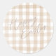 Beige gingham check pattern happy easter classic round sticker
