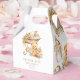 Delight your guests with these elegant favour boxes, featuring a watercolor beige and faux gold bassinet and teddy bear illustration. Perfect for baby showers, these personalized boxes add a touch of sophistication to your event. The charming design and customizable options make these boxes a memorable keepsake for your guests. Enhance your celebration with a stylish and practical touch.