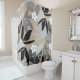 Modern shower curtain featuring a bold artistic stylish botanical leaf pattern in a beige and grey colour palette with black and white accents. A stylish artistic shower curtain for your master bath, guest bath or a modern home gift for any occasion. Designed as a template, you can create your own customized shower curtain by changing the image or background colours using the fields provided or select “customize” and navigate to the layers section to view the images and change the background colour to suit your taste, or use the “message” button to contact the designer for help.
